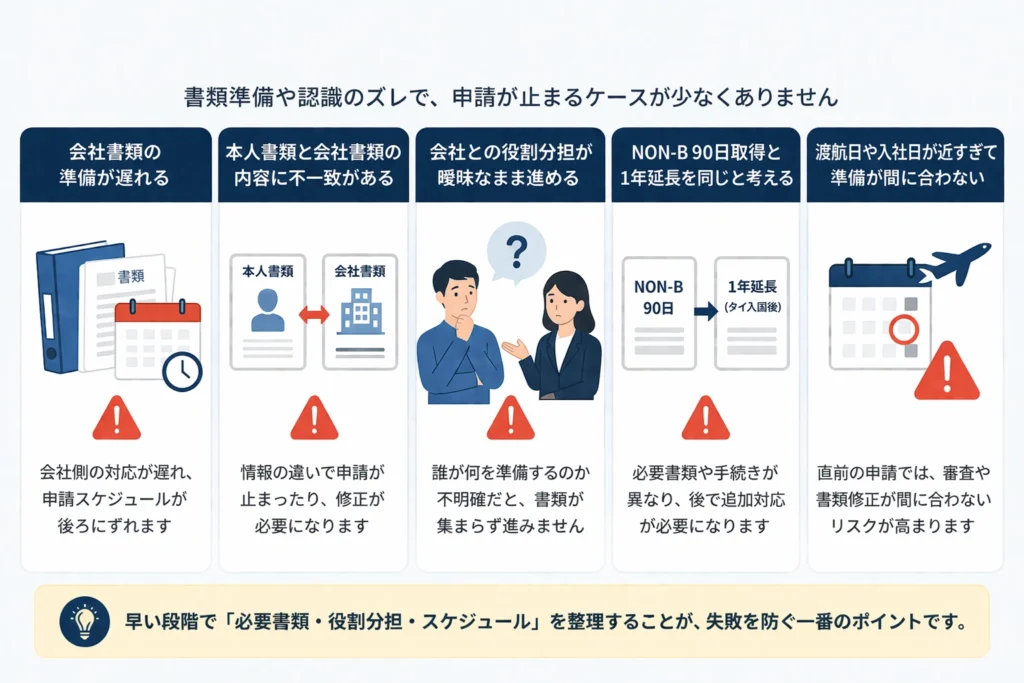タイBビザ申請では、制度そのものよりも、書類準備や認識のズレで止まるケースが少なくありません。